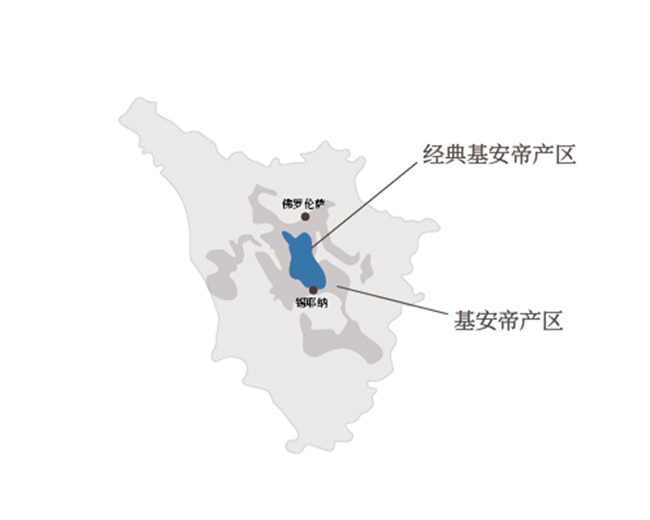 1984年,包括經典基安帝地區(qū)在內的基安帝地區(qū)獲得了意大利政府的DOCG產區(qū)認定。1996年,經典基安帝從基安帝法定產區(qū)的一個子產區(qū),轉變?yōu)楠毩⒌腄OCG產區(qū),正式與基安帝產區(qū)分道揚鑣。2010年,托斯卡納大區(qū)政府又立法禁止在經典基安帝產區(qū)內釀造基安帝葡萄酒,徹底將兩個產區(qū)劃清了界線。