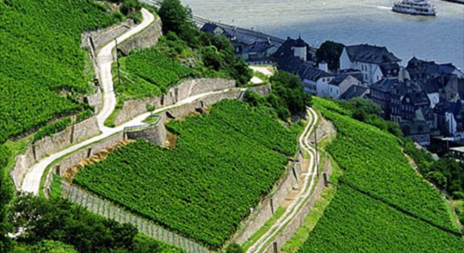 萊茵高是德國最小但最重要的葡萄酒產(chǎn)區(qū)之一,也是世界上知名的優(yōu)秀葡萄酒產(chǎn)區(qū)。萊茵高位于威斯巴登( Wiesbaden)和勞赫豪森(Lorchhausen)之間,整個產(chǎn)區(qū)沿萊茵河分布,由西而東地形從寬闊的平原逐漸變?yōu)槎盖偷男逼拢吧謨?yōu)美。