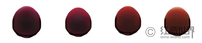 葡萄酒陳年時或多或少都會經(jīng)歷一個緩慢氧化的過程,葡萄酒顏色變化便是這一化學(xué)反應(yīng)最直接的表現(xiàn)。對于紅葡萄酒來說,其顏色主要來源于果皮上的色素。隨著時間推移,這些色素在氧氣的作用下,與單寧聚合,形成聚合鏈,從而減少了零散分布在酒液中的色素,紅葡萄酒的顏色也就隨之變淺,若陳年時間足夠長,甚至?xí)葑兂勺厣虿枭?/span>
