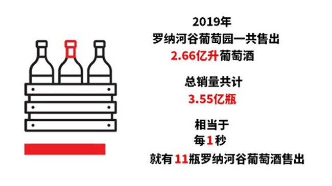 2019年,羅納河谷葡萄園一共售出2.66億升葡萄酒,總銷量共計(jì)3.55億瓶。這樣計(jì)算下來,在2019年里的每一秒,都有11瓶羅納河谷葡萄酒售出,消費(fèi)者對(duì)羅納河谷葡萄酒的喜愛與信賴可見一斑。