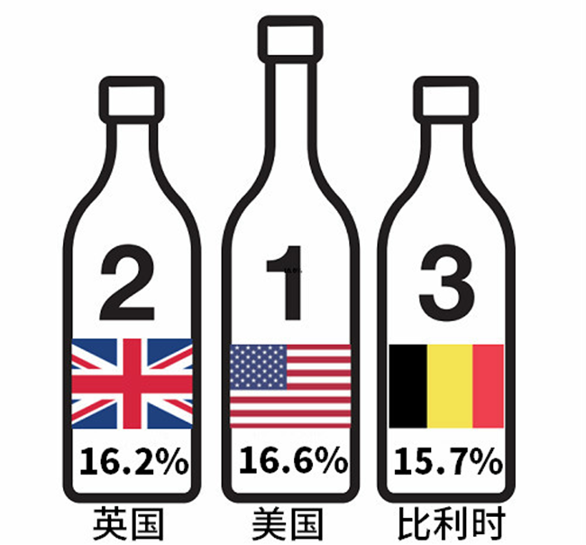 按大洲劃分的話,歐洲、北美和亞洲是主要出口地,羅納河谷葡萄酒分別有61%、24%和12%的出口量流向了這些地區(qū),其他的出口市場(chǎng)合起來僅占3%。若按國家劃分的話,羅納河谷葡萄酒的前三大貿(mào)易國則依次為美國(約1,465萬升)、英國(約1,427萬升)、比利時(shí)(約1,379萬升),大概分別占據(jù)羅納河谷葡萄酒出口總額的16.6%、16.2%和15.7%。此外,中國市場(chǎng)可以說是一匹“黑馬”,2019年的出口量約為697萬升,占據(jù)的出口份額從2014年的第八位躍升至現(xiàn)在的第四位,而這得益于該產(chǎn)區(qū)對(duì)中國市場(chǎng)的重視與持續(xù)發(fā)力。