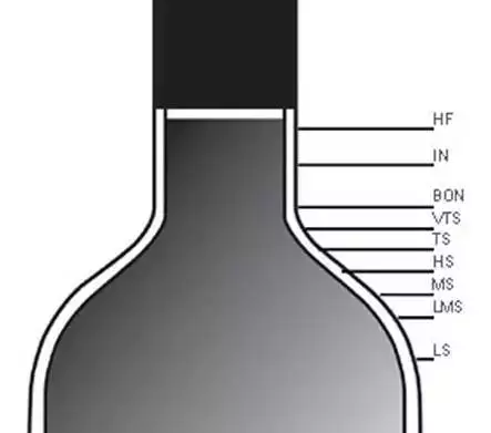 多指剛出廠時(shí)候的水位,一些新酒和陳年時(shí)間不長(zhǎng)的葡萄酒的液面大都在這個(gè)位置。