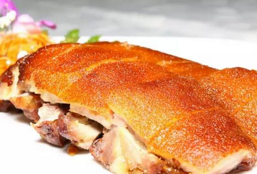 制作烤乳豬的時候先將內臟去掉,取香料腌制入味,再進行烤制,另外,豬皮含大量膠原蛋白,有養顏健膚功能。乳豬較瘦,脂肪含量少。色澤紅潤,光滑如鏡,皮脆肉嫩,香而不膩,讓你百吃不厭。