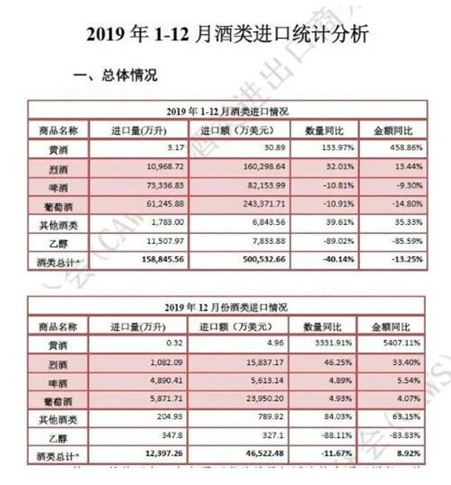 日前,中國食品土畜進出口商會酒類進出口商分會發布了最新的酒類進口數據。