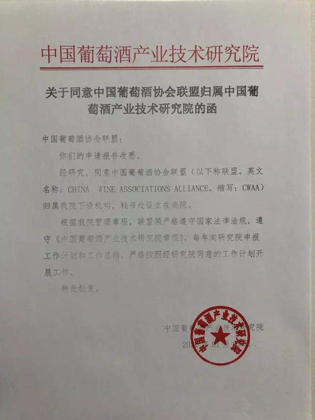 為了進一步推動聯(lián)盟工作,營造更加良好的工作環(huán)境和合理合法的開展工作,近日,中國葡萄酒產(chǎn)業(yè)技術(shù)研究院審批通過中國葡萄酒協(xié)會聯(lián)盟歸屬中國葡萄酒產(chǎn)業(yè)技術(shù)研究院領(lǐng)導(dǎo),秘書處設(shè)立在中國葡萄酒產(chǎn)業(yè)技術(shù)研究院。今后聯(lián)盟工作將在中國葡萄酒產(chǎn)業(yè)技術(shù)研究院的直接領(lǐng)導(dǎo)下開展工作,報備工作計劃和工作總結(jié)。