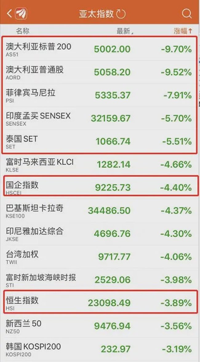 覆巢之下,無(wú)有完卵。早在3月16日,美股開盤暴跌超7%后,亞太主要股市也集體下挫。
