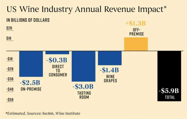 根據美國葡萄酒行業專家Jon Moramarco發布的報告顯示,受疫情影響,美國超過10000個酒莊和8000多個葡萄種植者在2020年收入損失可能達到59.4億元。