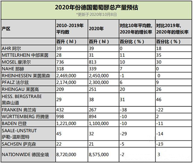 在德國全境范圍內,目前預計2020年的總產量約為8.6億升,接近10年來平均8.7億升的總產量,將比2019年的總產量高出3%。
