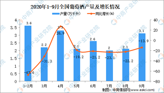 • 2020年1-9月中國葡萄酒產量數據統計分析