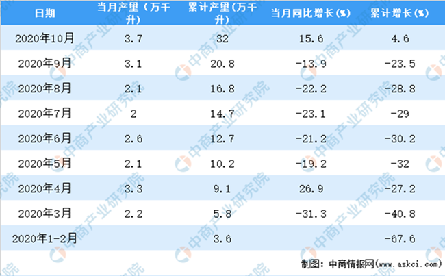 據中商產業研究院數據庫顯示,2020年10月全國葡萄酒產量增長,2020年10月全國葡萄酒產量為3.7萬千升,同比增長15.6%。2020年1-10月全國葡萄酒產量為32萬千升,同比增長4.6%。