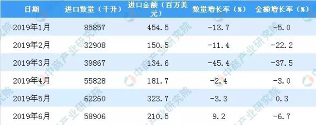 近日,中商產(chǎn)業(yè)研究院發(fā)布了一份2019年1-6月中國(guó)葡萄酒進(jìn)口數(shù)據(jù)。以下是今年上半年中國(guó)葡萄酒進(jìn)口數(shù)量及金額增長(zhǎng)率情況。