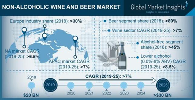 • 到了2025年,無醇葡萄酒和啤酒市場規模將達到300億美元