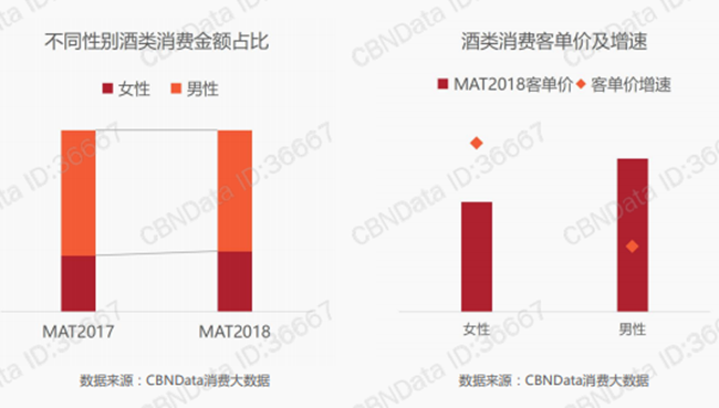 數(shù)據(jù)顯示,中國(guó)女性消費(fèi)酒水的金額比例和客單價(jià)雙雙上升。