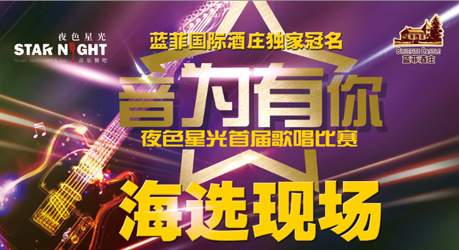 由東莞市藍(lán)菲酒業(yè)有限公司獨(dú)家冠名的,夜色星光音樂(lè)餐吧主辦的《音為有你》夜色星光首屆歌唱大賽全面啟動(dòng),初賽于8月9日-11日在廣州大道北佳潤(rùn)廣場(chǎng)盛大舉行!來(lái)自五湖四海的100多個(gè)音樂(lè)人“音”為愛(ài)好而相聚在一起,拿起麥克風(fēng),唱歌給你聽(tīng)!在夜色星光中用音樂(lè)發(fā)聲!這夜,舞臺(tái)為他們而設(shè),我們,為他們而來(lái)。