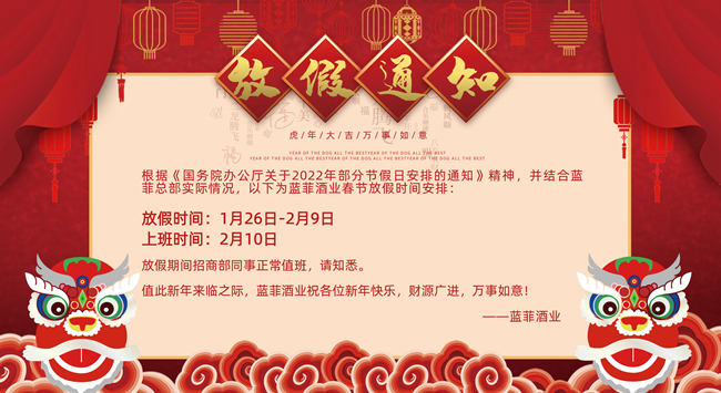 新年將至| 藍菲酒業(yè)向廣大經(jīng)銷商恭賀新春!